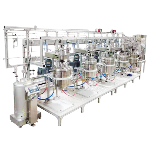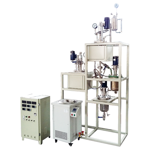 反應(yīng)釜加熱方式為夾套導(dǎo)熱油循環(huán)加熱,配導(dǎo)熱油加熱油爐及熱油循環(huán)泵,在PID程序控溫條件下,實(shí)現(xiàn)釜體內(nèi)穩(wěn)定加熱制冷。